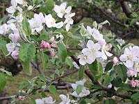 近所のリンゴ畑の花が満開です。 花は周りの視線を引きつけて、魅了するのですね。しかも自然に。 理由を考えるのも無意味なほどに・・・