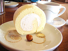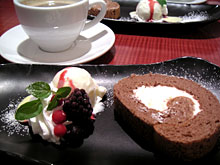 写真はデザートのココアのロールケーキです。